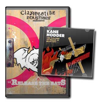 Fueled By Ramen asked us if we'd like to give some of their stuff away. Seeing as I've always wanted to be a philanthropist but lacked the money, this seemed like a good idea. So we agreed that a good start would be to give away a copy of Kane Hodder's recent release on the label The Pleasure to Remain So Heartless, a DVD from Clandestine Industries titled Release the Bats and some other nice paraphernalia to two winners.