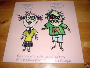 The front of the record sleeve features a drawing of Erin as well as the name E. Dagger, which refers to her. On the back are the words, "This record was made w/love by: Karina, Bill, Jl, and your husband." The matrix of the record reads, "Happy 33 1/3"