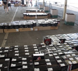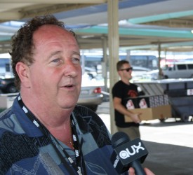 3:00: Met Steve Van Doren, who's father started Vans, the shoe company so successfully attached to the Warped Tour. Today Steve was heading a crew that was likely charged with one of the more "thank you" generating tasks of the day - giving every band and crew member free shoes, clothing and other assorted goods. Not surprisingly, Steve is stoked about the start of another year on the road. "It's an amazing, beautiful day. We've done tours of Australia, New Zealand and Japan, so it's a special thing [to be back for the 15th year of Warped Tour], says Van Doren.