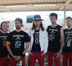 3:45: I see the guys from Outernational sitting around a picnic table. They're easy to make out because they are wearing matching red jeans and black tee-shirts. Sounds silly, right? The band is being touted as the next Rage Against the Machine, but judging by the songs on their recent release, Future Rock, they're closer to Global A Go-Go Joe Strummer. Vocalist Miles Solay says one of the things they're most excited about is hitting the smaller markets that Warped Tour either goes through or draws from. "We are from New York City and Warped Tour hits a lot of smaller markets with suburban and rural youth. Even in the major markets get people from the outlaying areas." The band says that reaching out to these people is important to their goal of not keeping the revolutionary spirit of their music confine to basements.